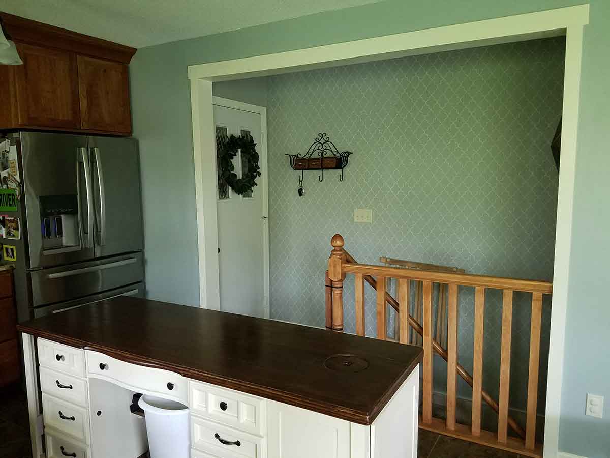 To finish off the counter you have a few options. You can use a heavy duty polyurethane or go really heavy duty and use a bar top epoxy… nothing will penetrate that counter. I went with the polyurethane because I was still planning on switching to my awesome butcher block and didn’t want to spend the money for the bar top. Now I love it so much I’m going to keep it this way so bar top would have been worth it.
