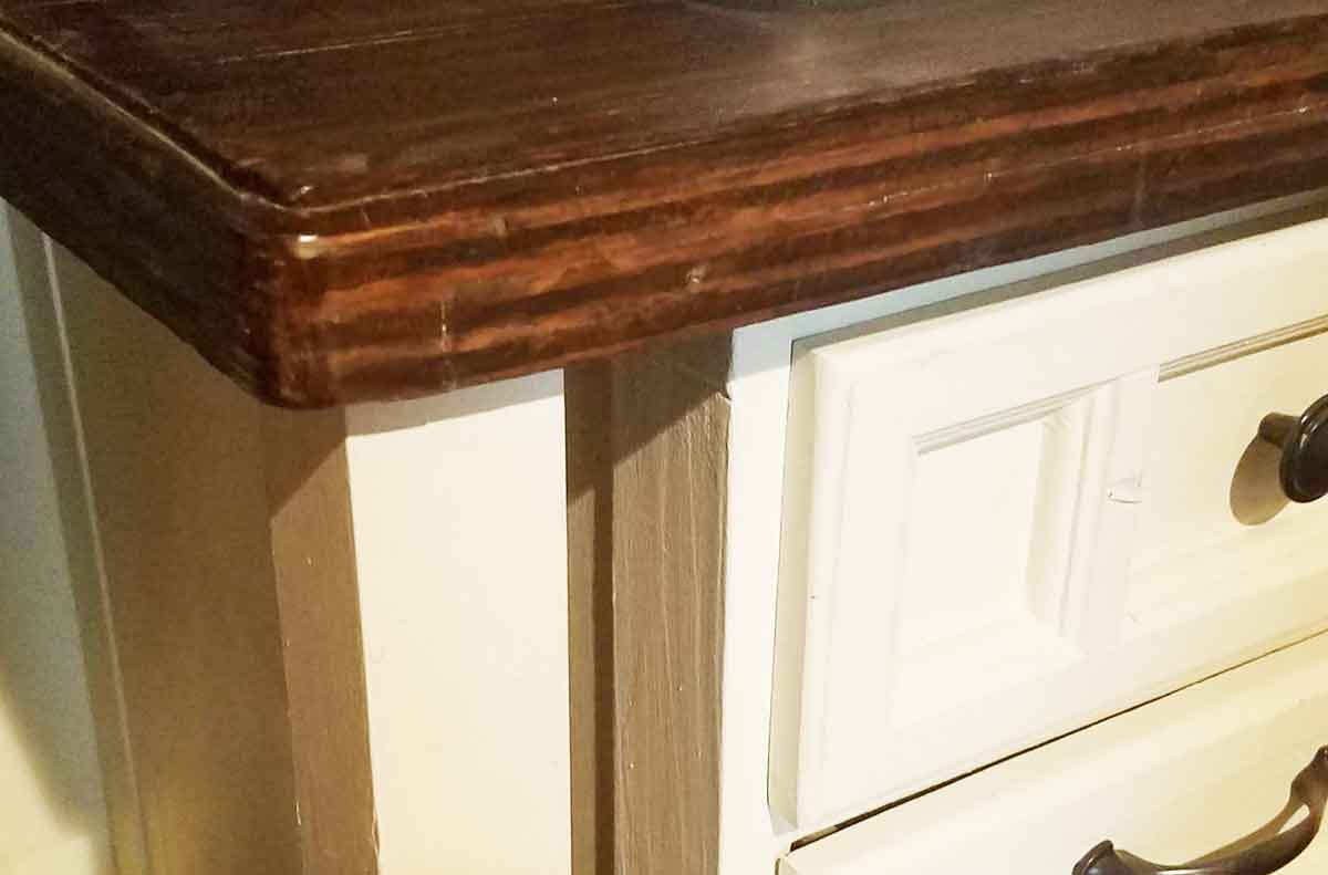 Plywood does leave gaps where it pulls out a bit of wood from the layers. Simply fill these in with wood putty. Wood putty won’t stain the same way as the rest of the wood. After I stained the counter I went back and painted the wood putty so it matched the rest of the counter edge. Or you can buy colored putty and put it in after you have stained your counter. Get two or three colors so you can blend to match your counter. Walnut putty will not exactly match walnut stain — I don’t know why, but it won’t (buy here).