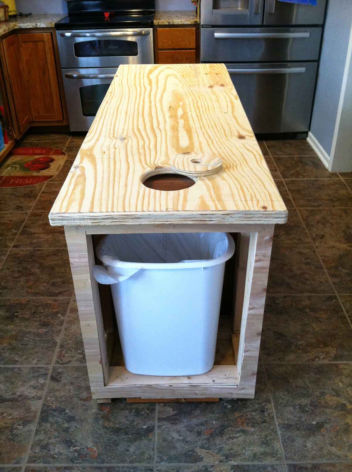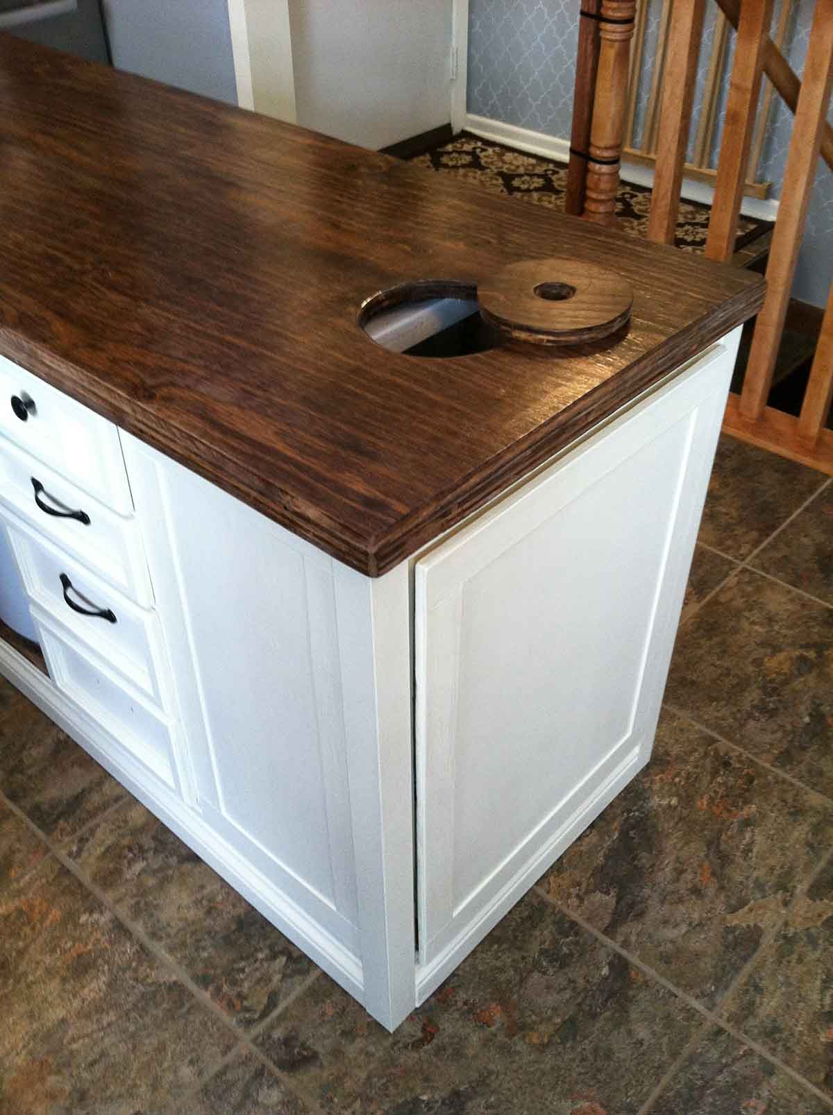 I ended up adding a trash lid to the top of my counter (link to the Best kitchen island), to see if I liked it. Give it a try see if you like the shape before you commit with a more expensive counter.