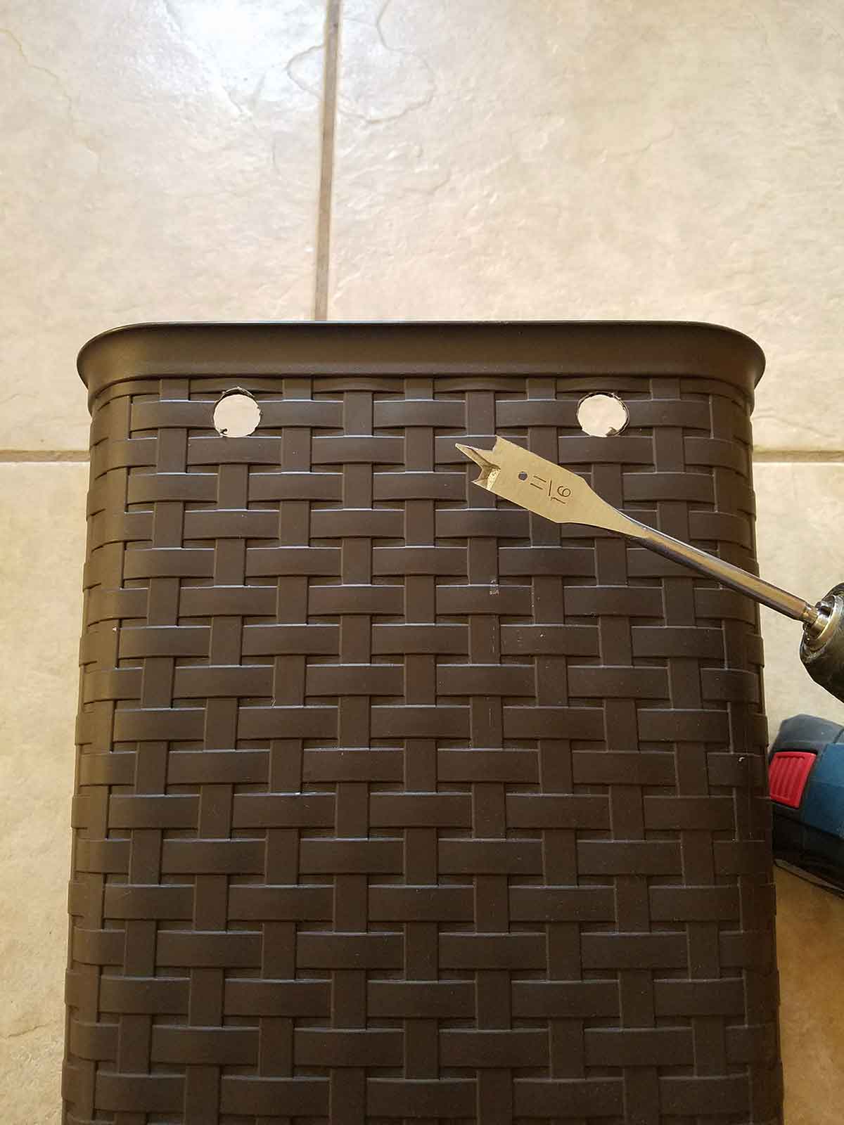 (Drill holes in the can I placed mine, 5 ½” apart on an 11” wide can.