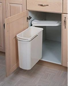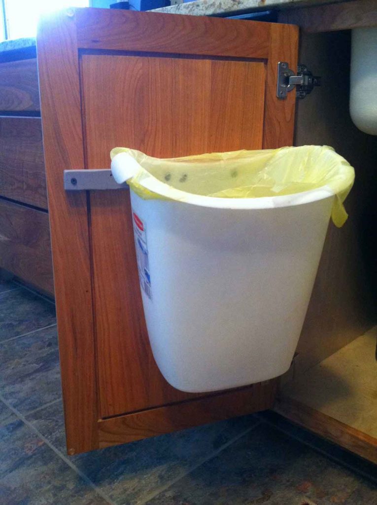 If you haven’t already noticed, I love to throw things away. Much of the clutter in a house is from things that just need to be thrown (or recycled, composted etc.). This all means easy access to trash cans = a less cluttered house. I really wanted a trash can under the sink that pulled out, to make cleaning easier – but have you seen the prices?