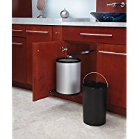 Find a small trash can that is roughly 3/4ths or less the width of your cabinet door. This will help it fit well and not be too heavy for the door. I found this one at Walmart for $4, you could also check the dollar store or score a thrift store find. If you want this exact trash can you can pay $12 on Amazon.