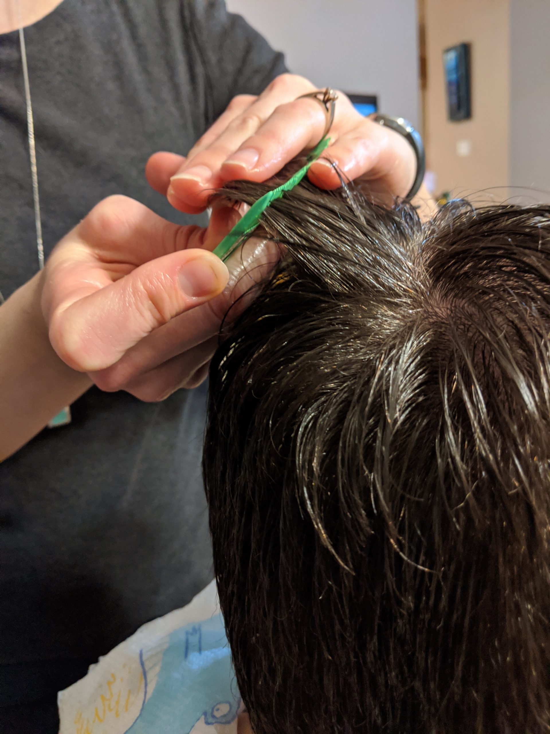 After you have completed the living area clean sweep. AND after you have combed through their hair to remove the nits and lice. Start the final step with dry hair.